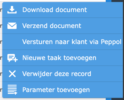 Wanneer u naar het scherm Verkopen / Facturen gaat kan u via de ... achteraan de lijn kiezen om de factuur via Peppol naar de klant te verzenden.