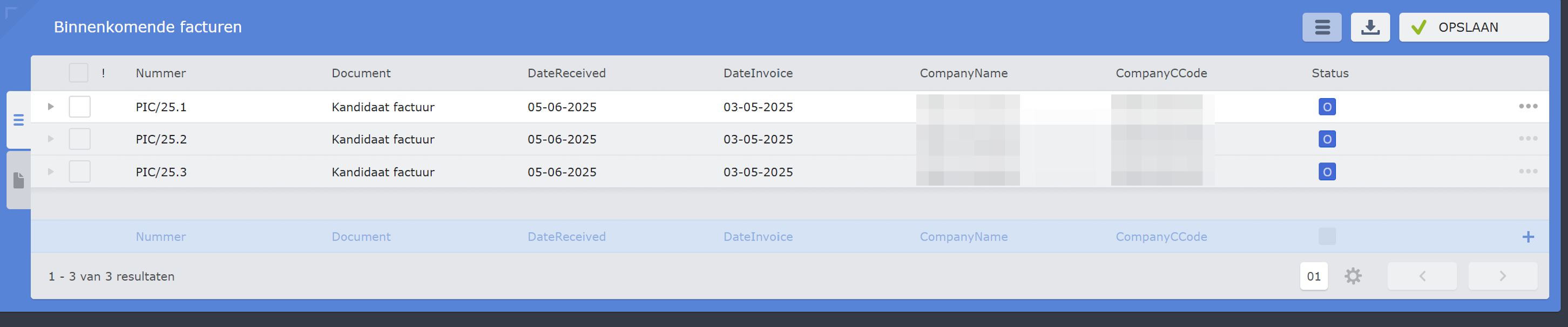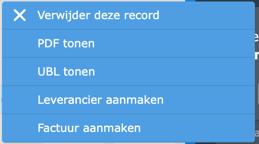Met de ... achteraan elke lijn kan u het PDF bestand of het UBL bestand van de binnenkomende factuur bekijken.